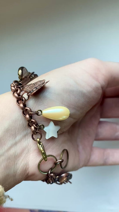 #handmadejewelry #charmbracelet #copper #czechglass #motherofpearl